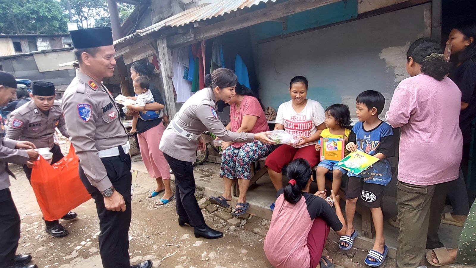 Di lokasi Jalan Kemang Utara IX, puluhan anak-anak antusias menerima buku cerita bergambar yang dibagikan anggota Polantas dan komunitas motor. “Buku ini bukan sekadar hiburan, tapi juga media belajar yang bisa menginspirasi anak-anak di sini,” jelas Kombes Latif Usman.